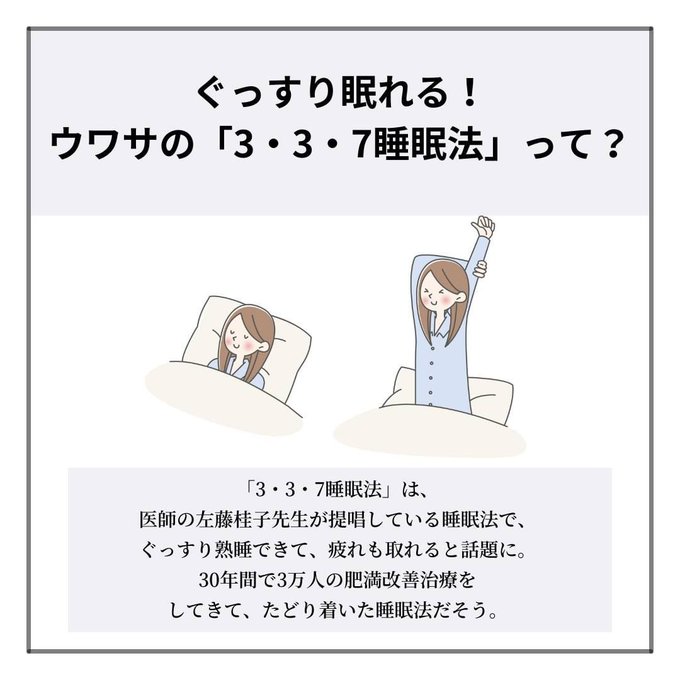 Mira ミラ 好き が見つかる 美容専門 ぐっすり眠れて翌朝スッキリ ダイエット 効果も期待できるという 3 3 7睡眠法 についてご紹介します 聞いたことはあるけど やり方が分からない なんて方も この機会に是非試してみてください 睡眠法
